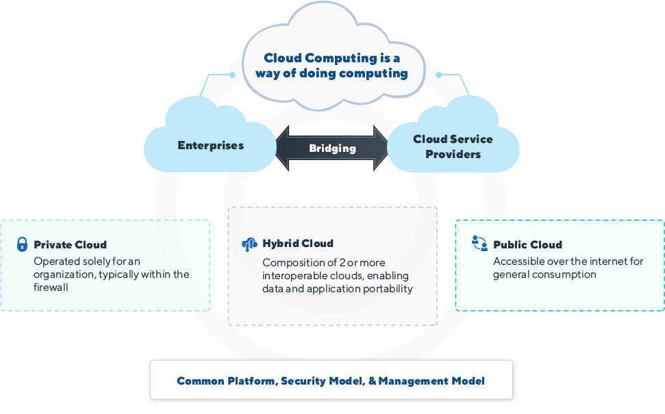 Find out moreA hybrid cloud is the combination of both private and public cloud platform services in complex data centre resource orchestration where the hardware, database, and software applications required for business operations are shared between architecture from multiple service providers in production at scale.